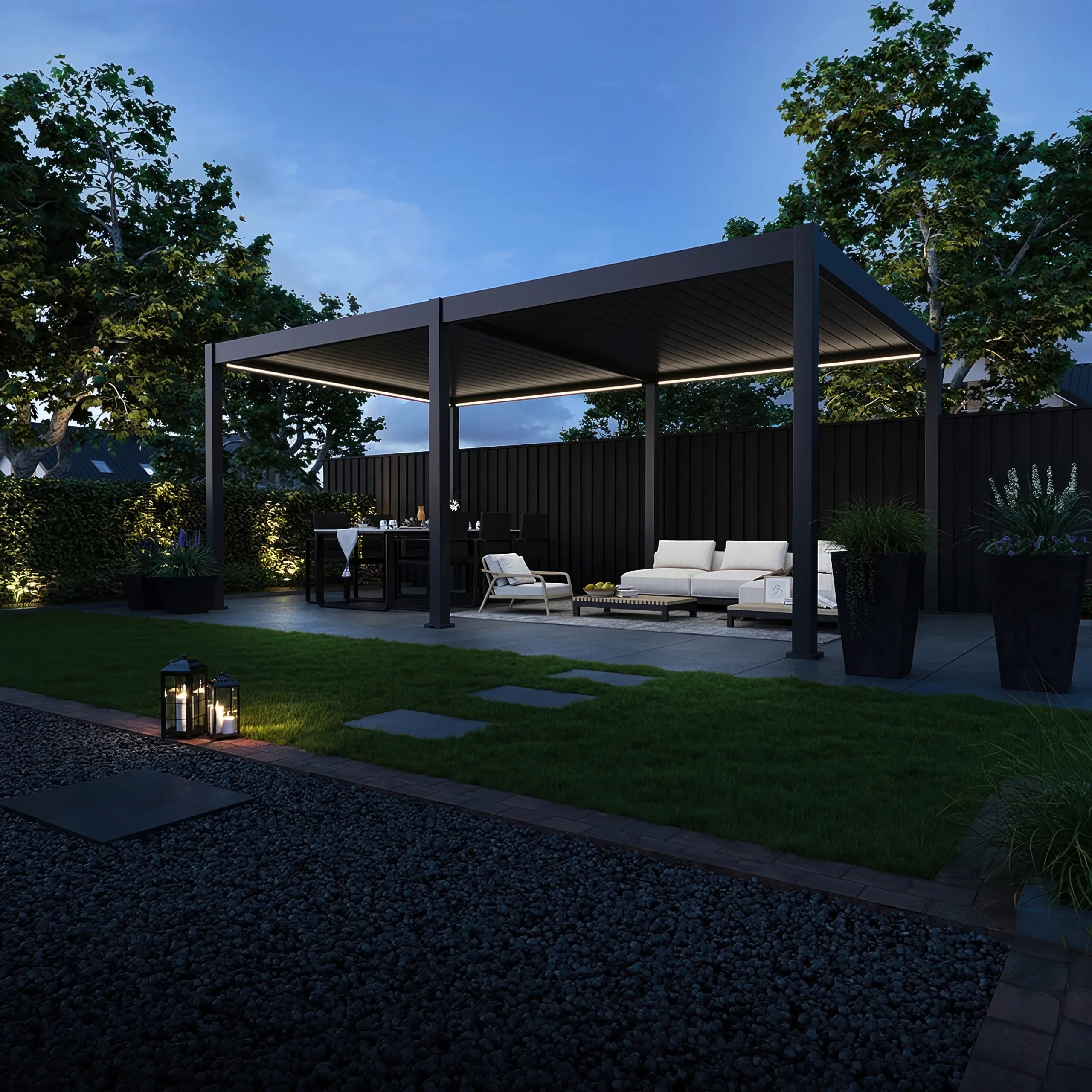Aluminijasta pergola z motornim upravljanjem in LED osvetlitvijo